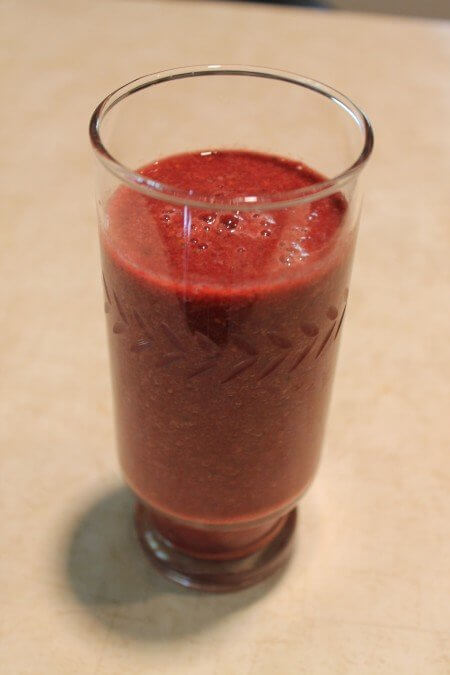 Judy took half the beet greens, and added half a frozen banana and some raspberries we picked last night.  We didn’t grow the banana.