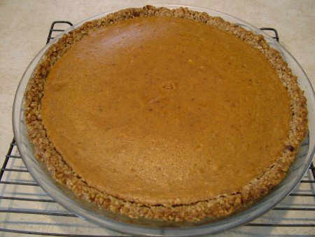 As soon as I saw this sweet potato cream cheese pie recipe in the local newspaper a few months back I knew I needed to try it. But I didn’t want to use a traditional flour pie crust. I knew that a nutty pie crust would balance the sweetness of the filling, so I held off on trying the recipe until I found a crust that was all nuts and no flour. A few other changes were made too. Maple syrup was substituted for sugar in the filling and the spices were increased for extra flavor.