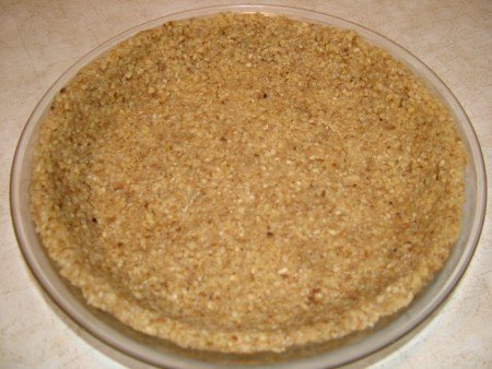 After researching nutty pie crusts I found one with all nuts, and enough butter to bind everything together. It has a little bit of sugar which enhances the flavor and probably fuses it all together, though you could probably leave the sugar out if you wanted to. Here’s how to do it: