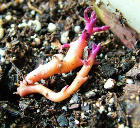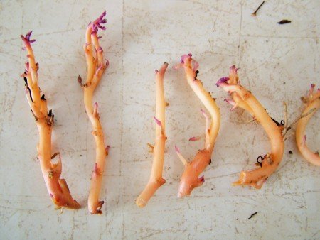 The sprouts can be broken off into small pieces, each of which becomes a plant start.