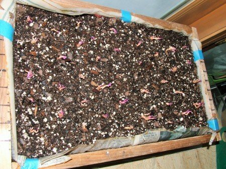 I’ve got 42 starts in this flat. I only plant 18 potatoes each year, so I should be in great shape for my own garden and have plenty to give away. Once these little starts get established and start to put out some green, I’ll have to transplant them to much deeper boxes and spread them out. They don’t like to be shallow rooted or crowded.