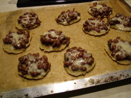 This is my version of a stuffed gordita (masa cake) recipe that I tried with a filling of pinto beans and cheese. The traditional gordita is stuffed like a pita pocket. Though they were very tasty the first time I made them I thought they were much too heavy with more masa than filling. So the next time I tried them as an open-faced version.