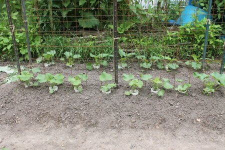 I planted smaller squash and melons without a firm idea on how I was going to trellis them. Going online, I found several references to using metal concrete reinforcing grids as trellis material. I knew immediately this was a good solution that would easily integrate with my T-posts, which I use for most of my trellis frames.