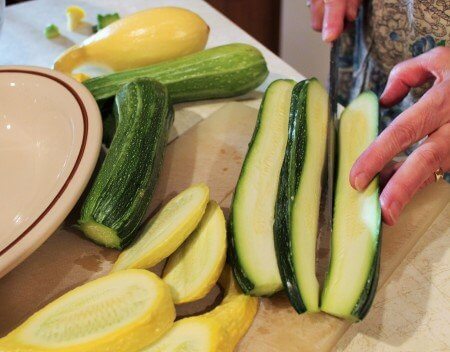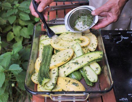 Noel has been grilling the squash slices basted with a vinaigrette dressing. They only take about 10-20 minutes to cook and are delicious.
