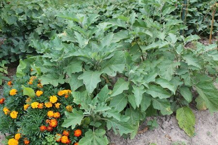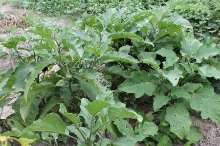 As often happens with plants, if they can survive an initial insect onslaught and start putting out some healthy new growth, they can overcome the damage. That’s what happened here. Just a month ago Judy said that it looked like we wouldn’t have much in the way of eggplant this year, but they are back strong and we will have all we need.