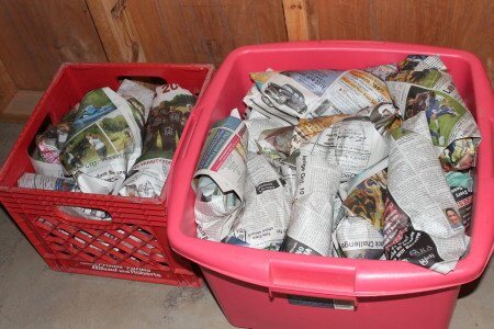 After a two week curing, we wrap the larger potatoes in newspaper and store them in our heated basement. They’ll keep a year in storage and maybe even a little longer. Left too long, they’ll start to sprout, which is okay, because the sprouts are a good source for sweet potato starts to plant again next season.