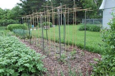 We continue to use T-posts as our primary trellis structure supports. I like them because they are cheap, nearly indestructible, and they can handle huge loads.