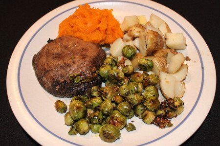 We served them with a red wine/tamari seared portobello mushroom, buttered potatoes and pureed Red Kuri squash. Yum!